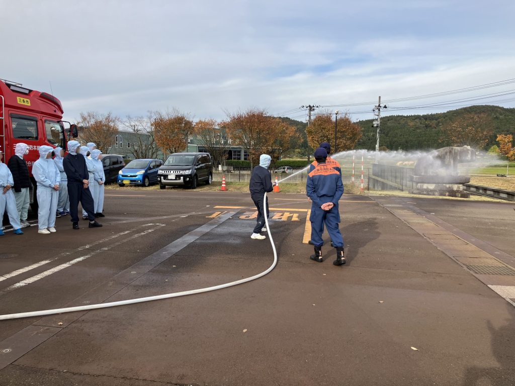 訓練後には、毎年恒例の消火器訓練および放水訓練も実施。実際の機器を用いた体験を通じて、いざというときの備えを改めて確認する機会となりました。